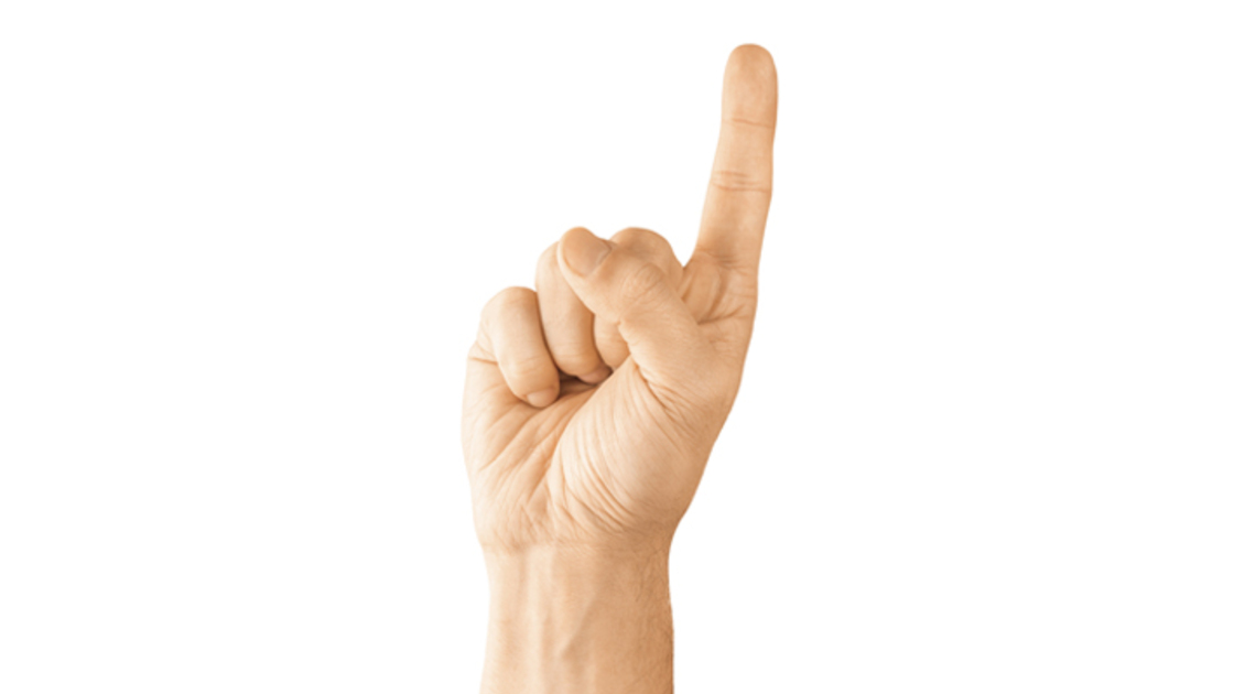 Hand Pointing Up with Index Finger on White Gesture Indicating Touch