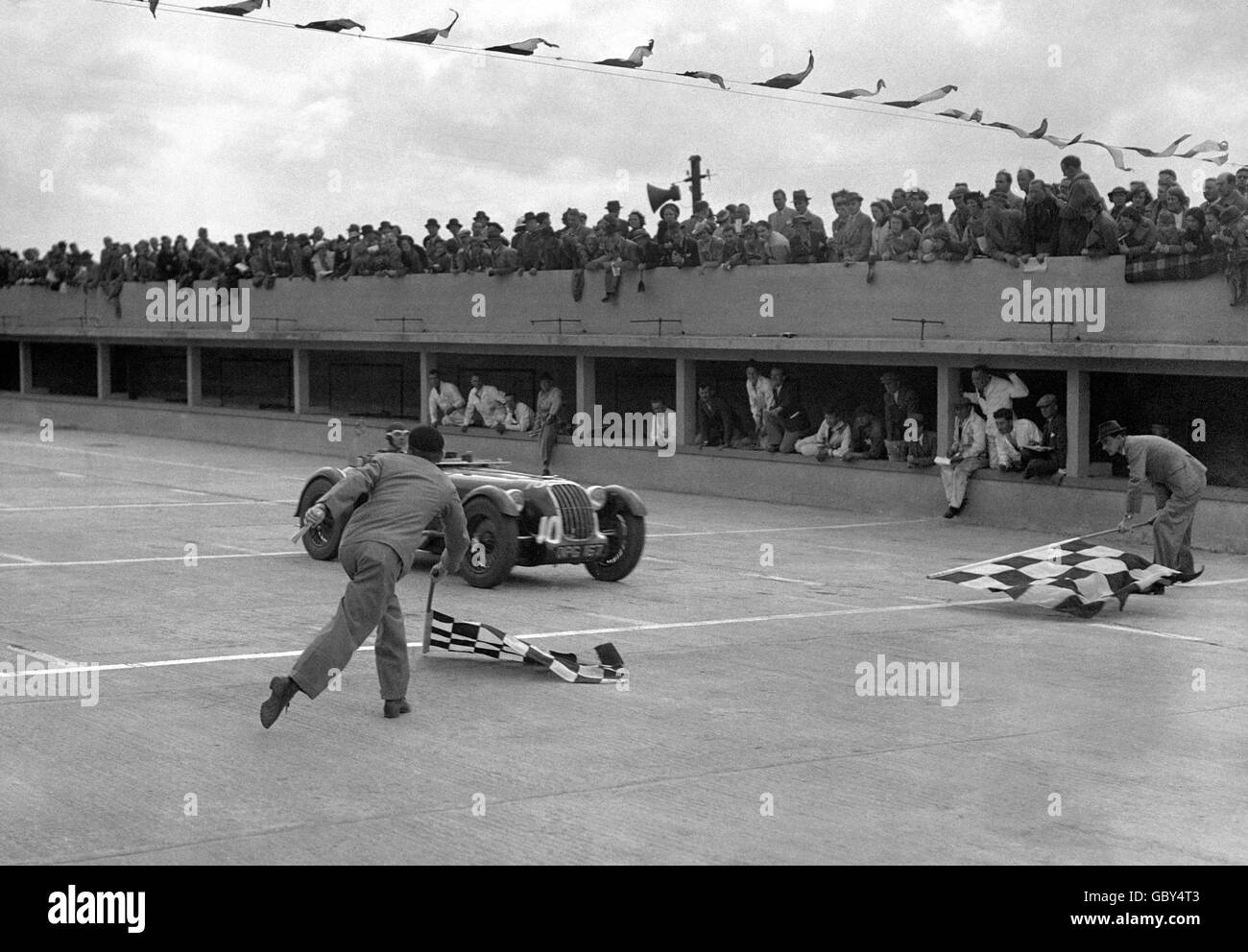 Finish line motor racing Black and White Stock Photos Images Alamy
