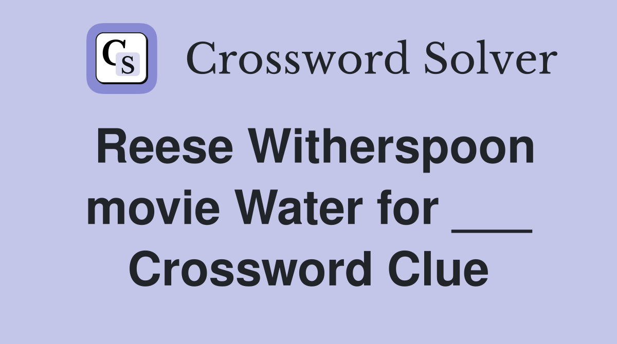 Reese Witherspoon movie Water for Crossword Clue Answers