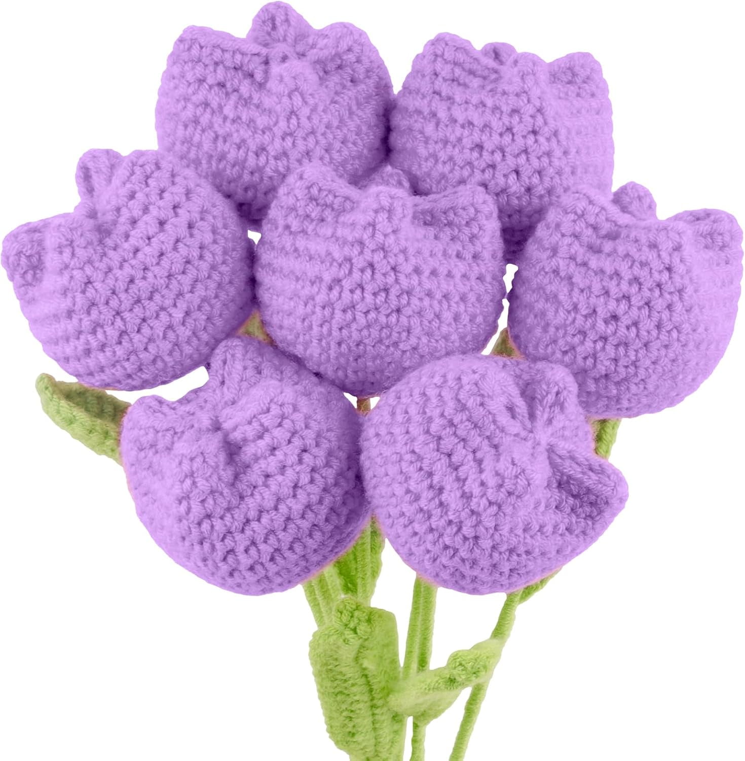 Derest 7 Pcs Tulips Crochet Flowers Artificial Tulips Knitted Flower