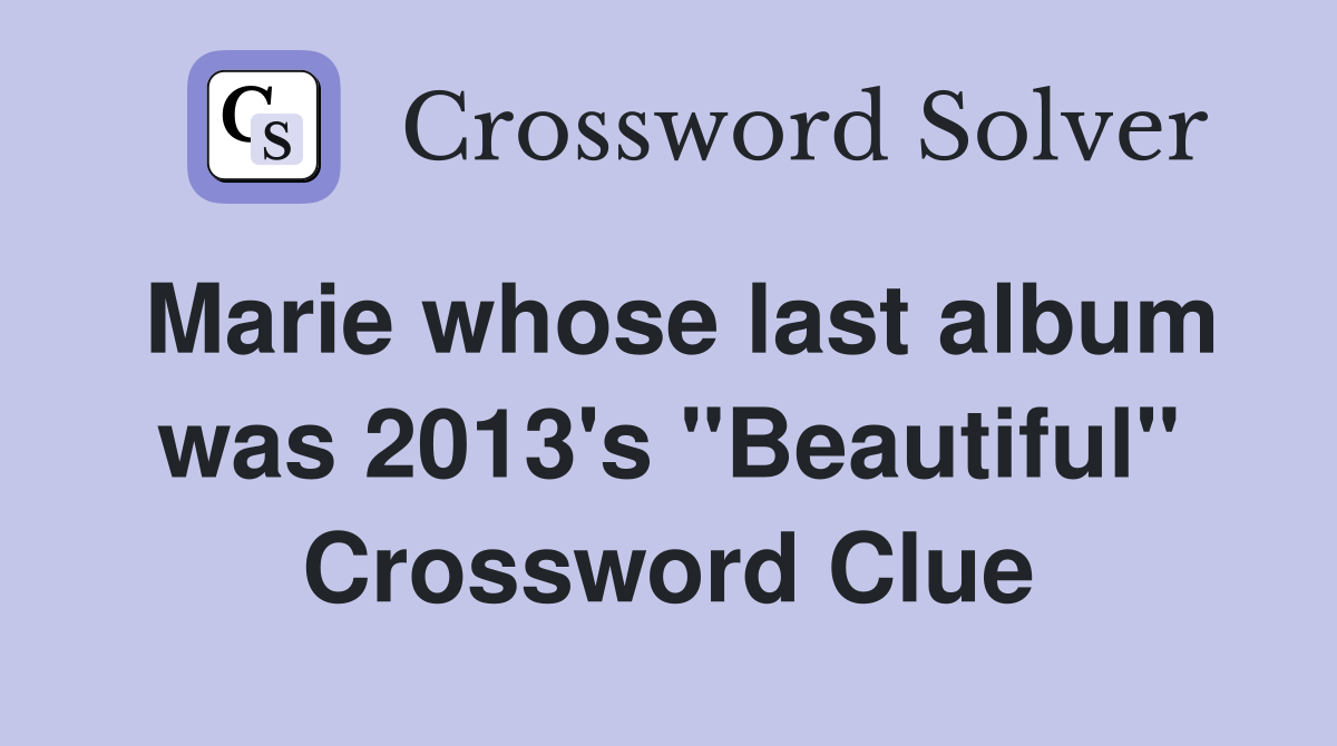 Marie whose last album was 2013 #39 s quot Beautiful quot Crossword Clue Answers