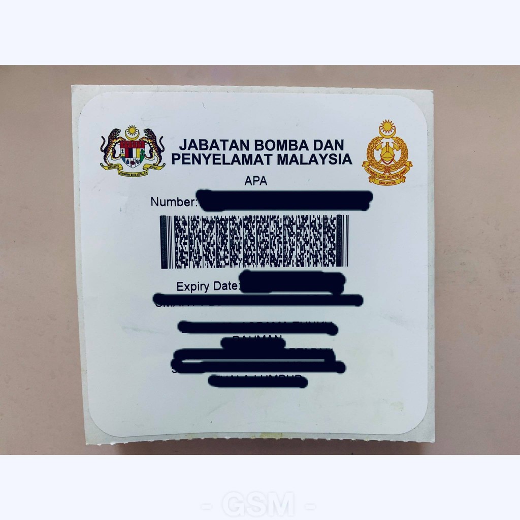 Bomba License/Certificate For Fire Extinguisher (Sijil Bomba Alat