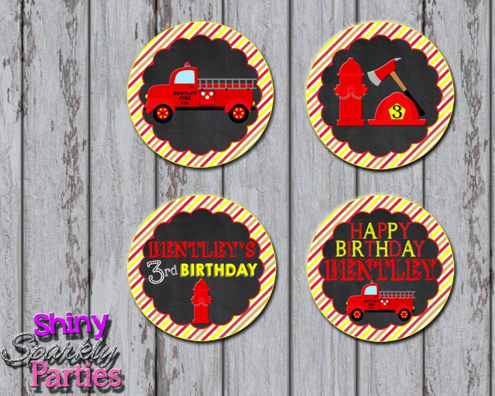 Printable FIRETRUCK CUPCAKE TOPPERS Firetruck Party Circles Etsy