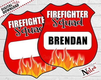 Fireman Badge Template Fire Chief Name Tag Printable Etsy