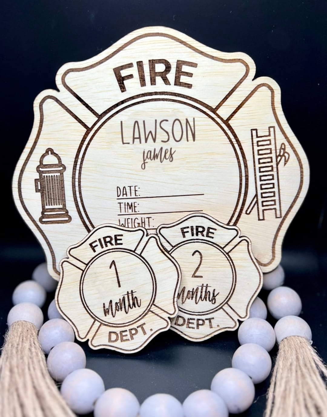 Personalized Fire Fighter Badge Baby Milestone Name Sign Baby Gift