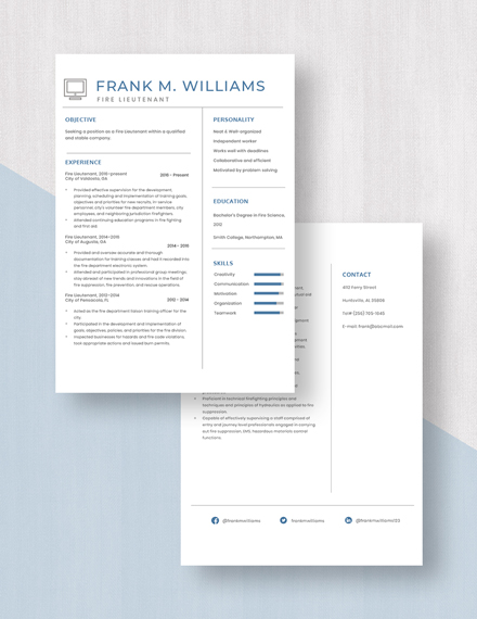 Fire Lieutenant Resume Template Word Apple Pages Template net