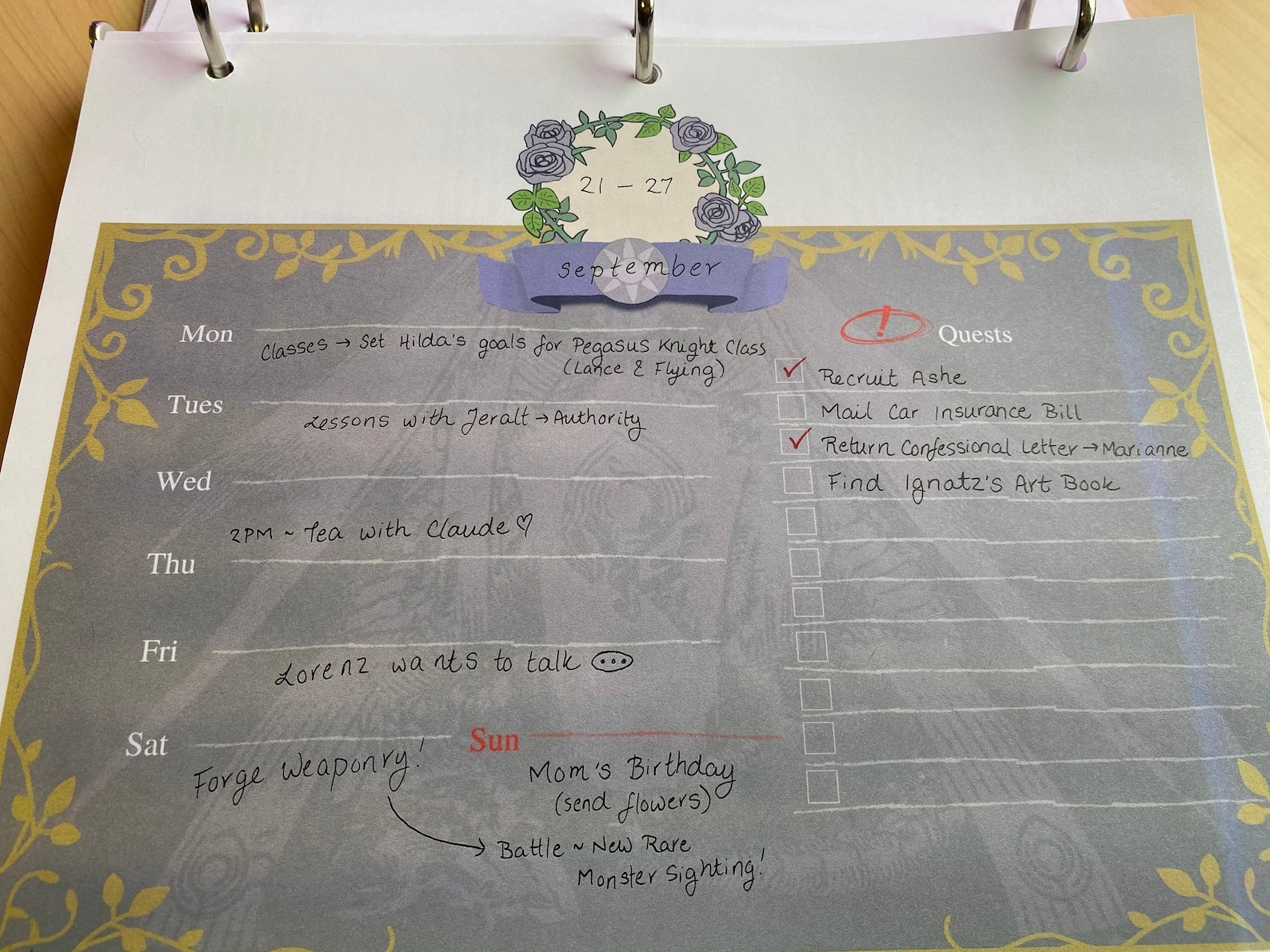 Fire Emblem Three Houses Weekly Agenda/planner and Notes Page Printable