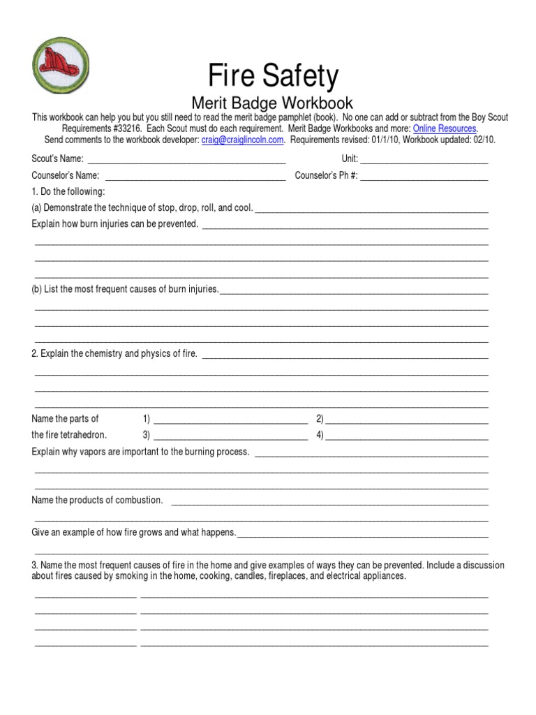 Fire Safety Merit Badge Worksheet