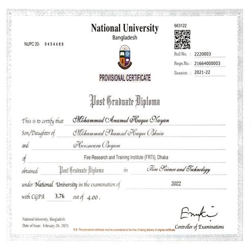 Postgraduate Diploma in Fire Science Certificate PDF