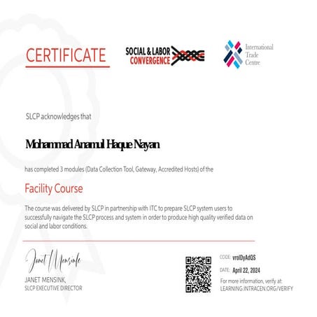 Facility Course and Certificate of Completion PDF