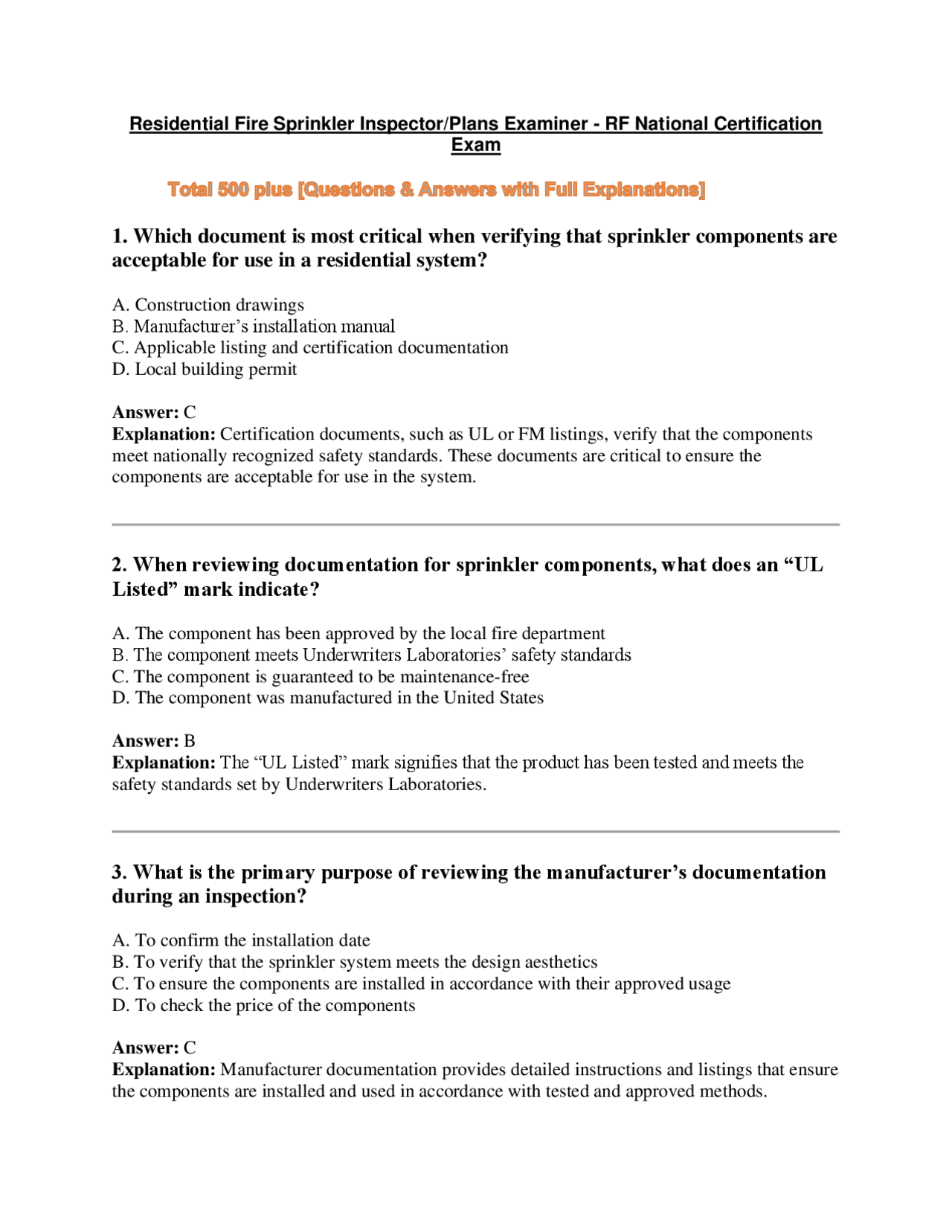 Commercial Fire Sprinkler Inspector CF Certification Exam