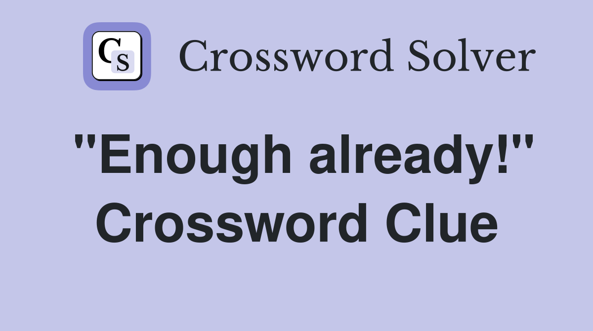 quot Enough already quot Crossword Clue Answers Crossword Solver
