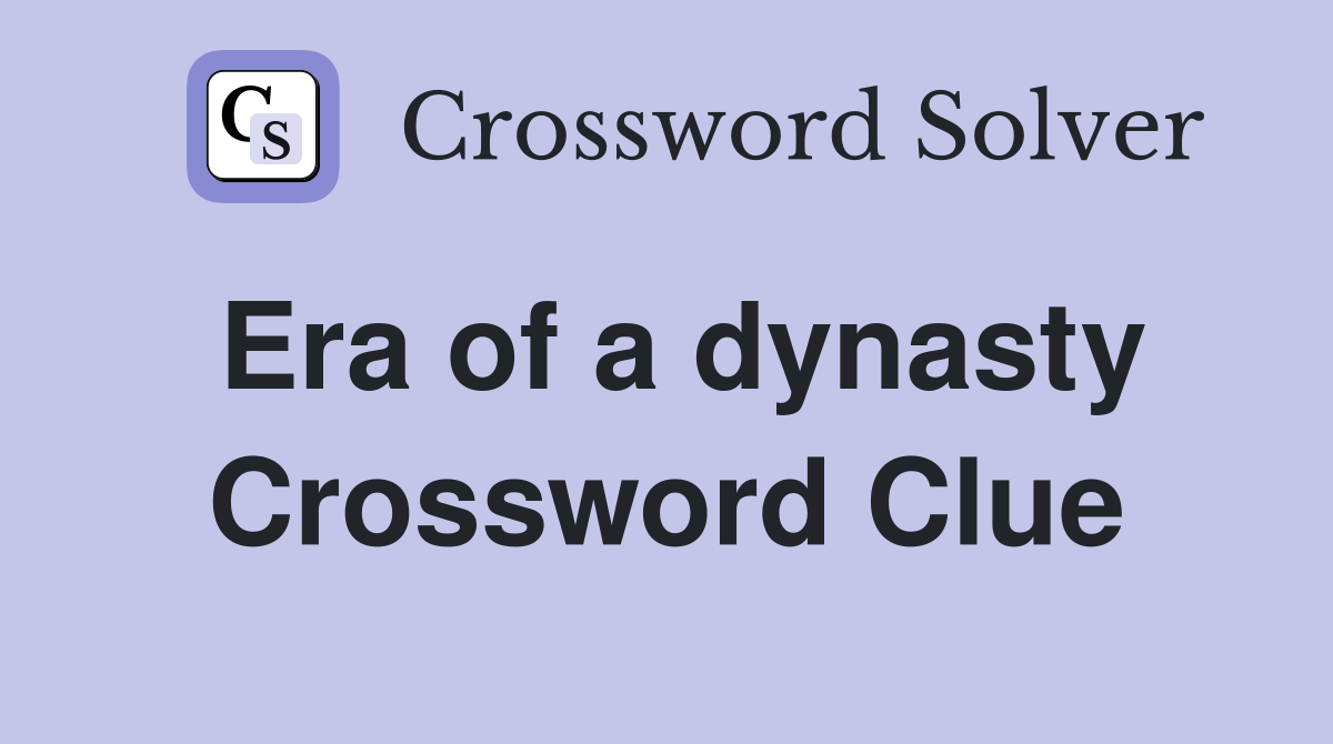 Era of a dynasty Crossword Clue Answers Crossword Solver