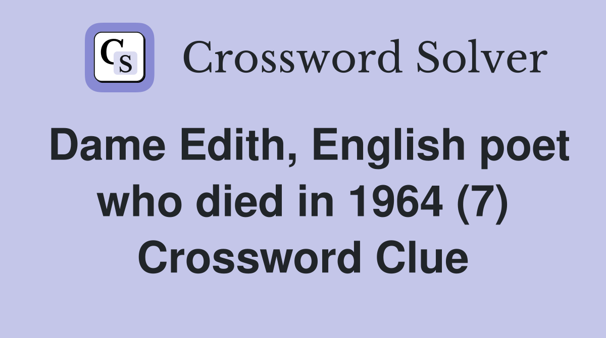 Dame Edith English poet who died in 1964 (7) Crossword Clue Answers