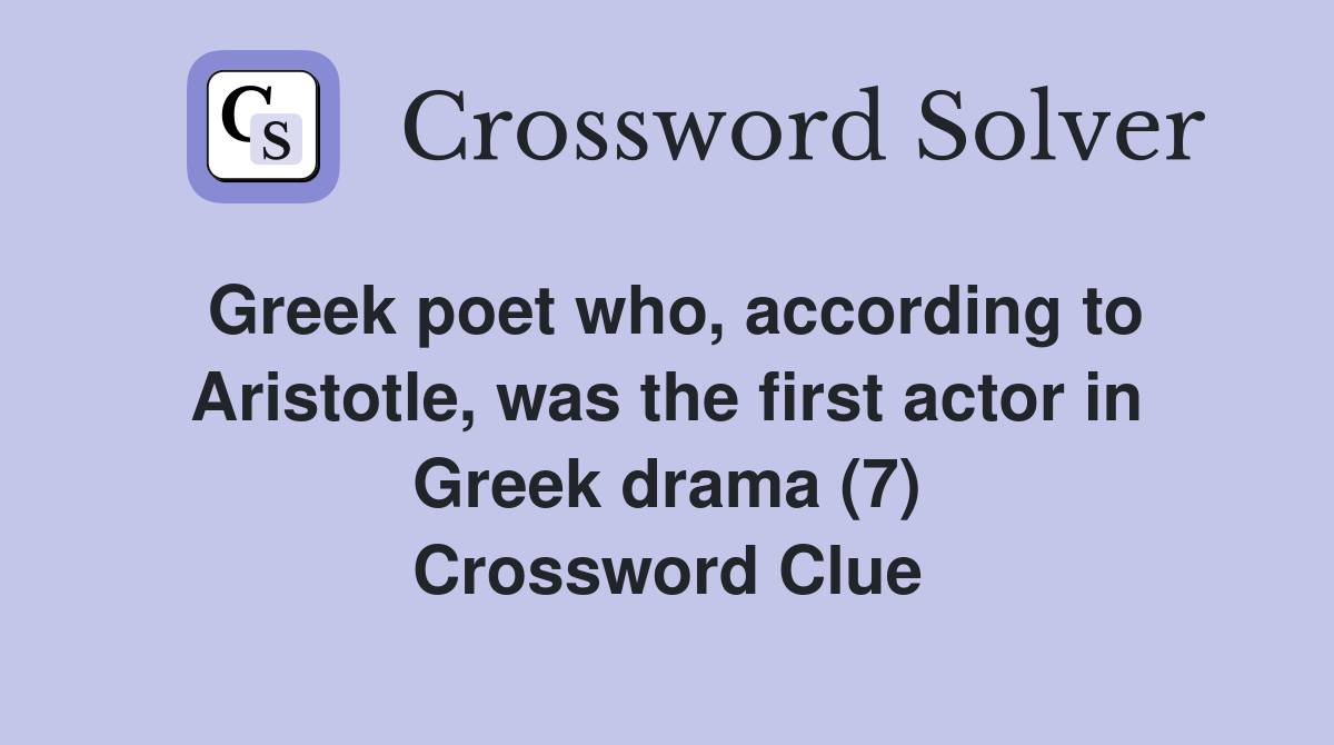 Greek dramatic poet of the 6th century BC (7) Crossword Clue Answers