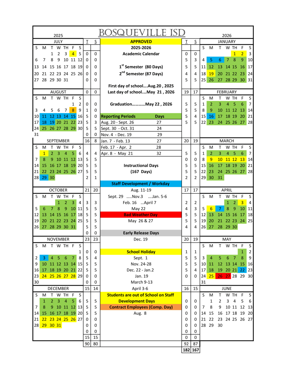 Bosqueville Independent School District Calendar 25 26 Revised pdf