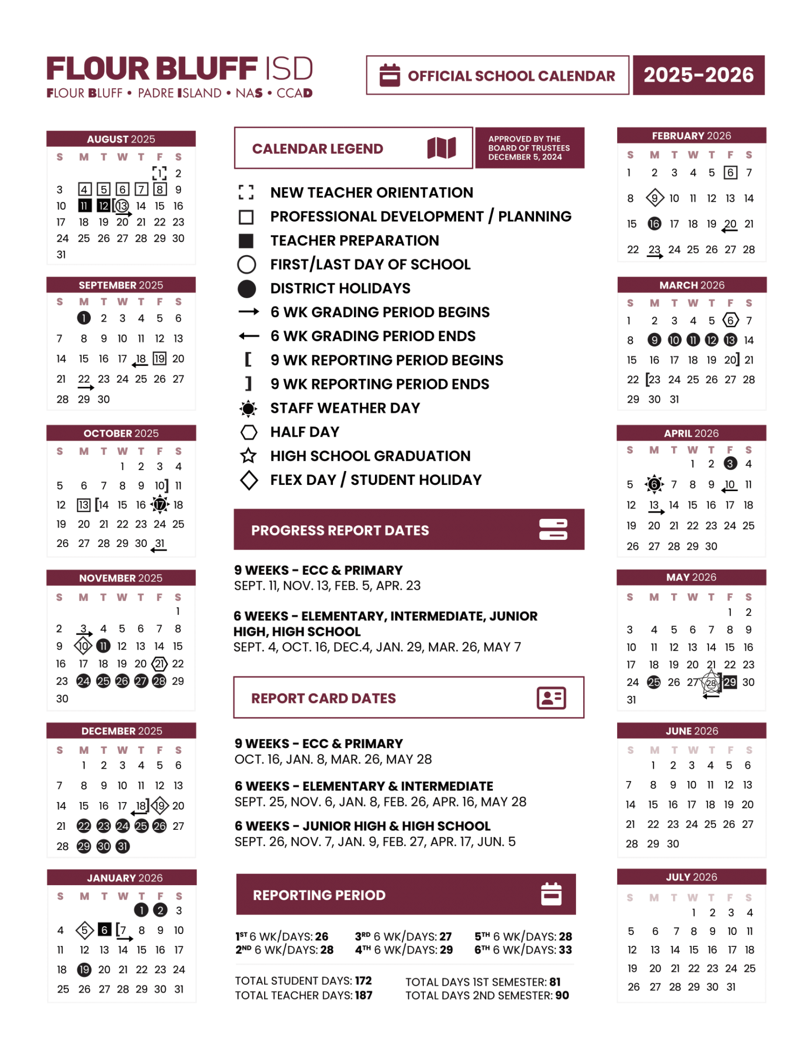 Flour Bluff ISD School Calendar 25 26 Revised pdf EduCounty