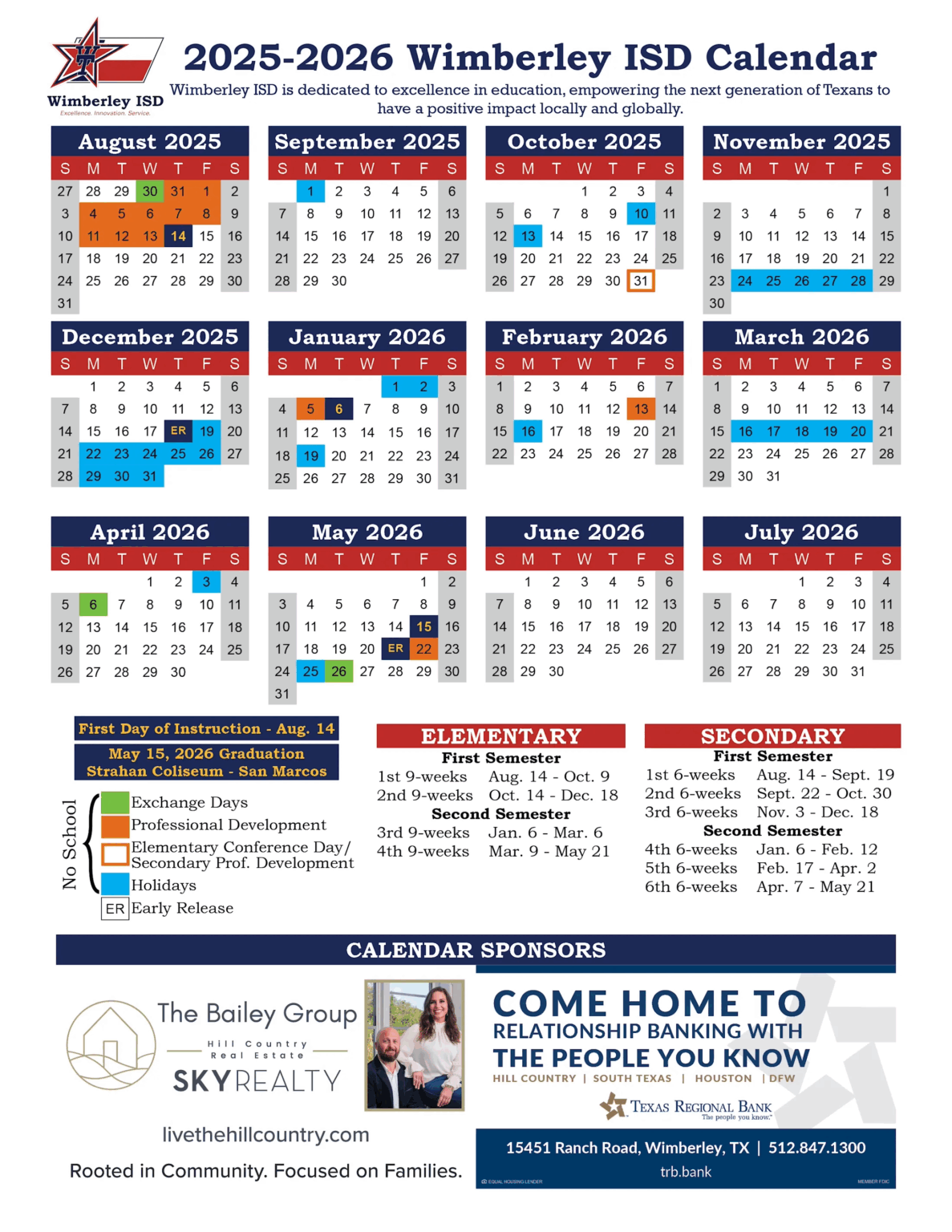 Wimberley ISD Calendar 25 26 Revised pdf EduCounty