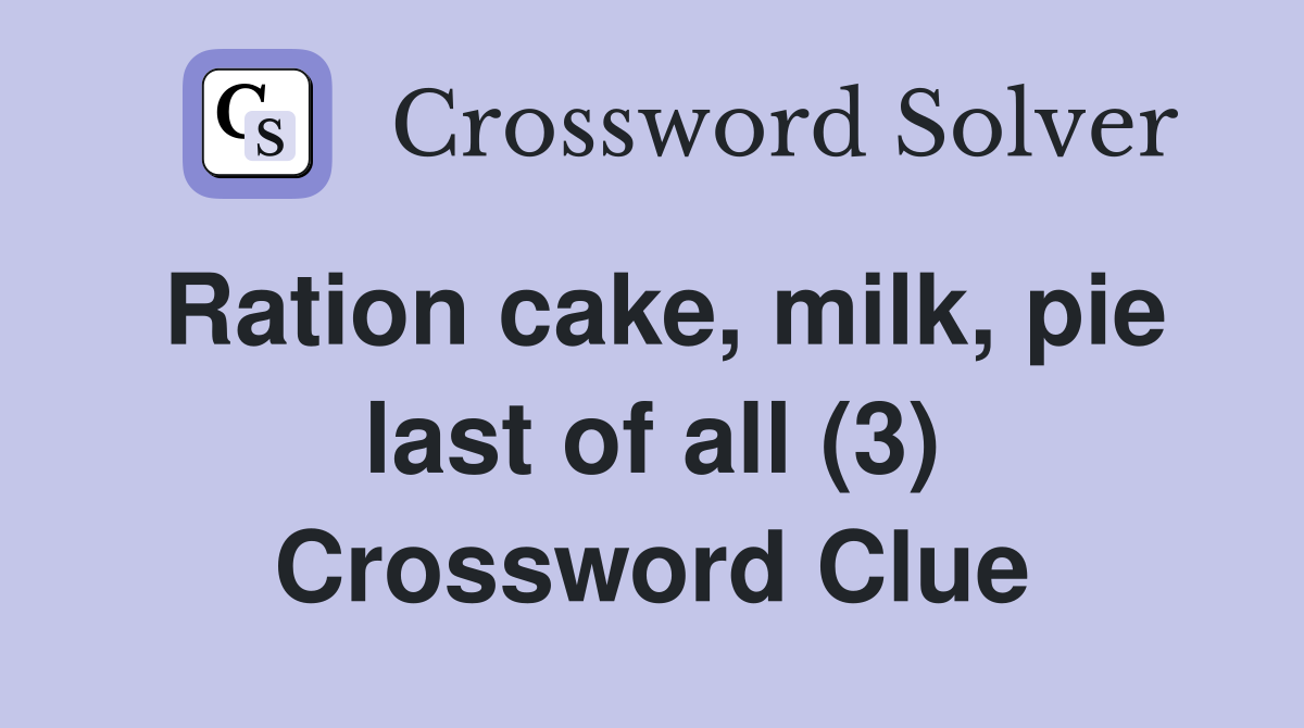 Ration cake milk pie last of all (3) Crossword Clue Answers