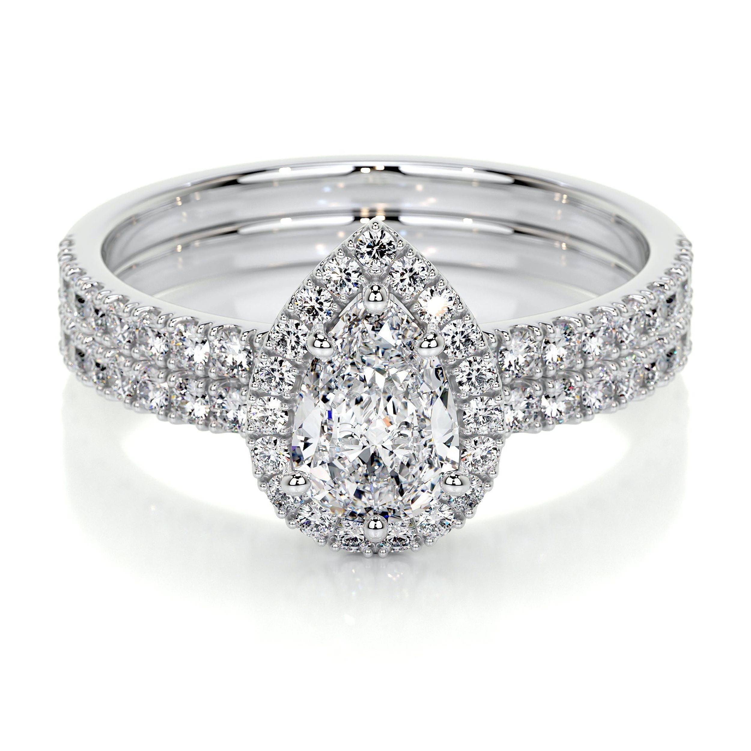 First Jewel White Gold Over 14K Silver Diamond Ring Pear Cut