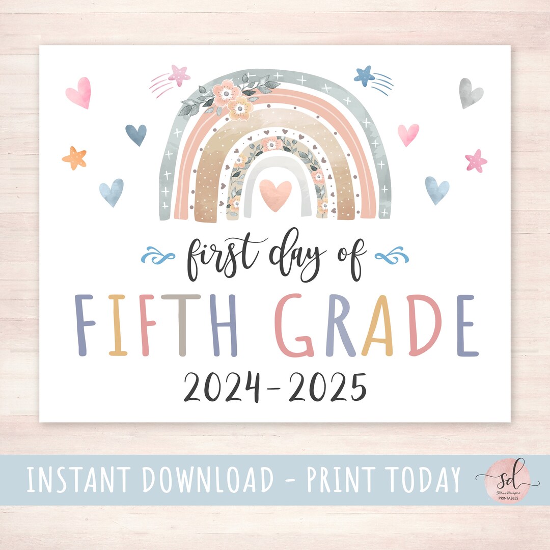 First Day Of 5th Grade Sign Back to School Fifth Grade Sign Rainbow