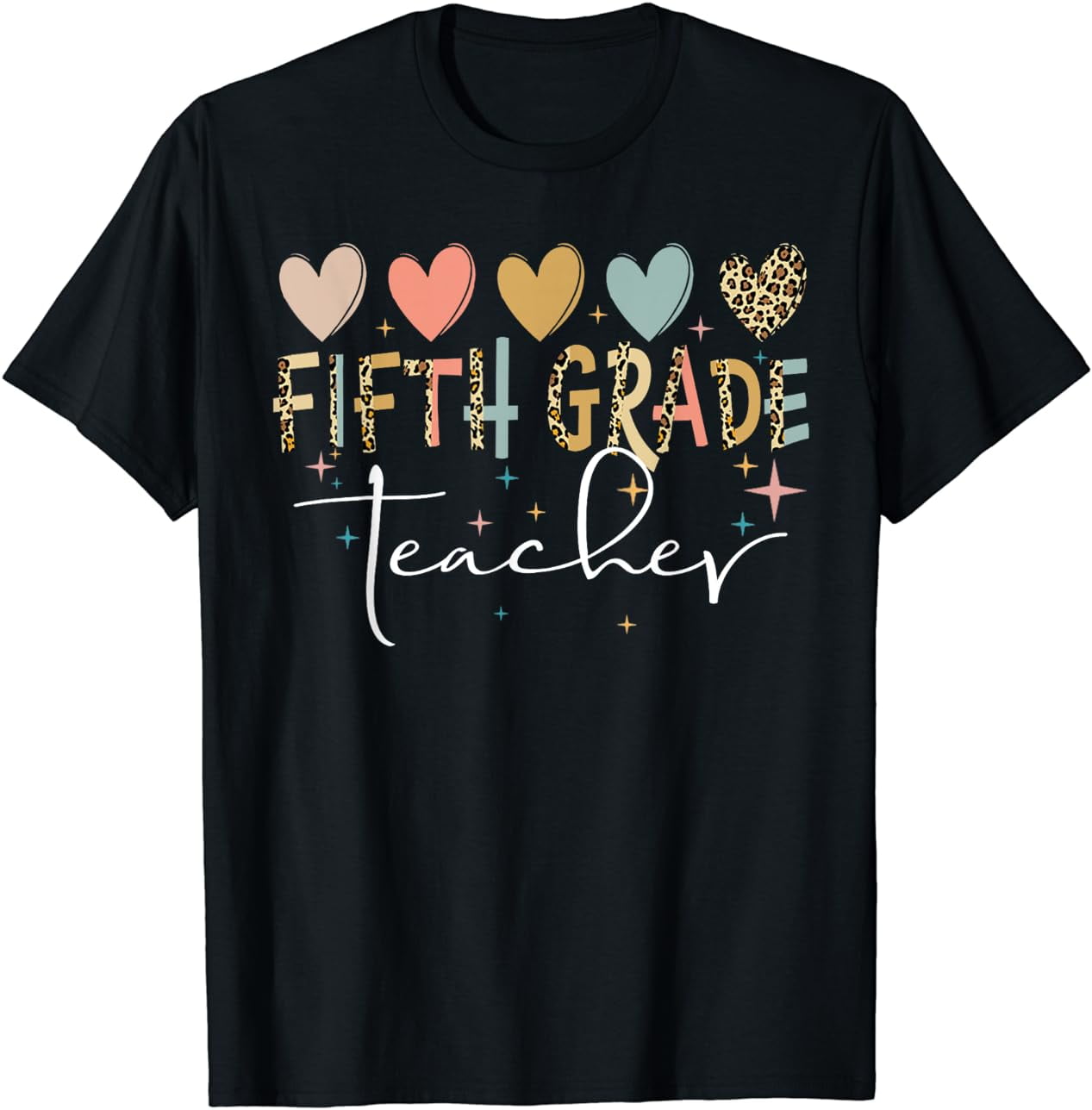 First Day Fifth Grade Teacher Shirt Cute Heart leopard Teach T Shirt