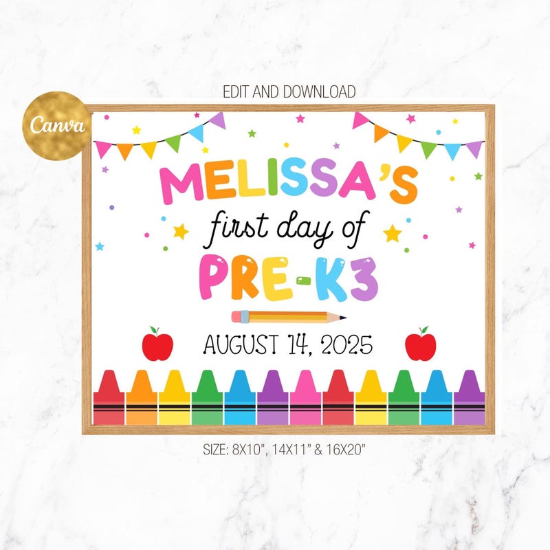 First Day of Pre K3 Printable Sign for Pictures 2025 2026 School Year