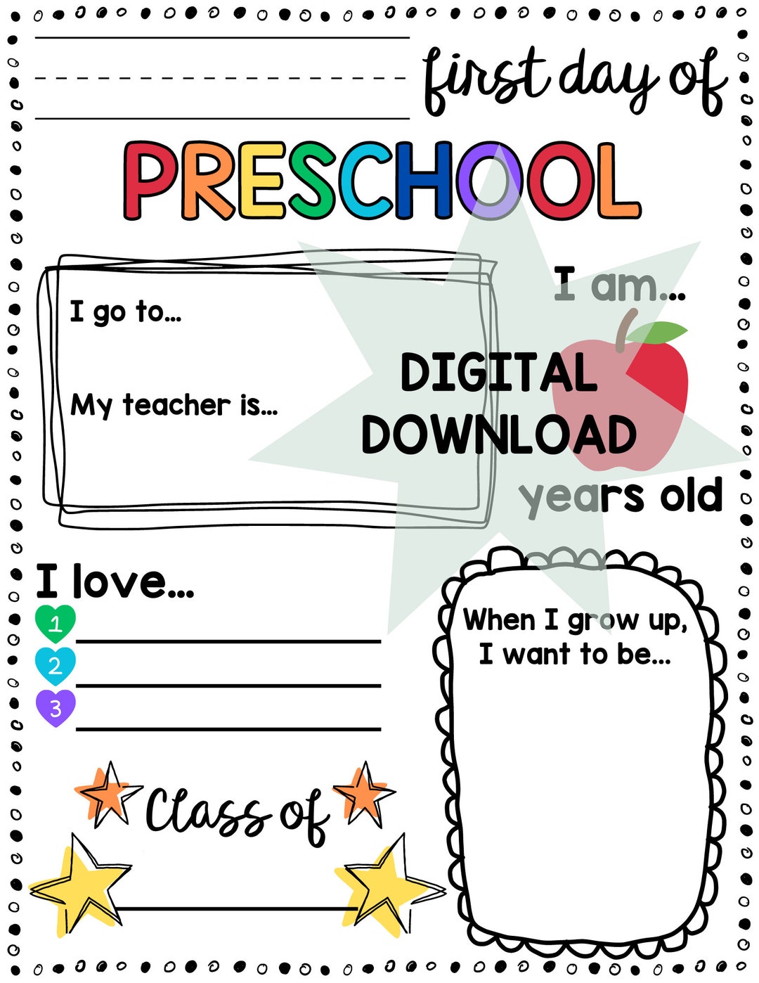 First Day of Preschool 2024 2025 First Day of School Printable Etsy
