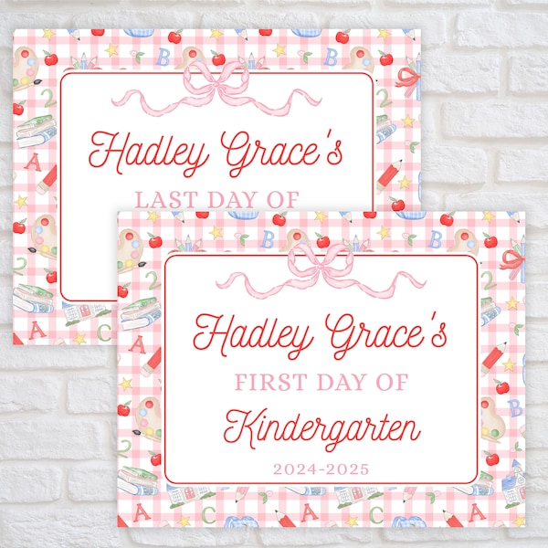 Printable First Day of School Sign for Girls Gingham First Day of