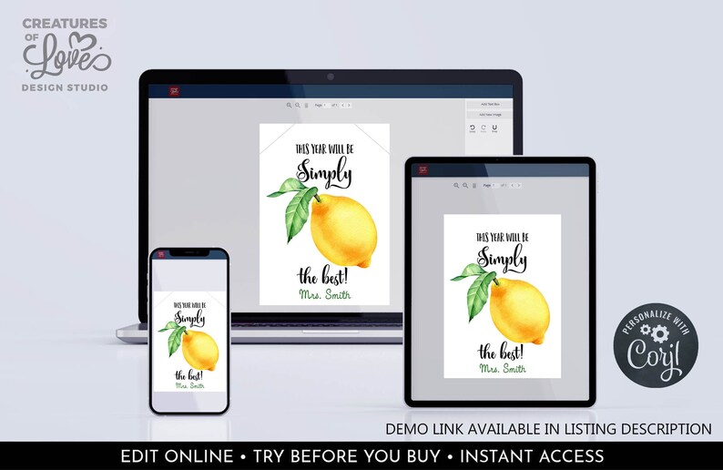 EDITABLE Back to School Gift Tags Lemonade Simply the Best Year Favor