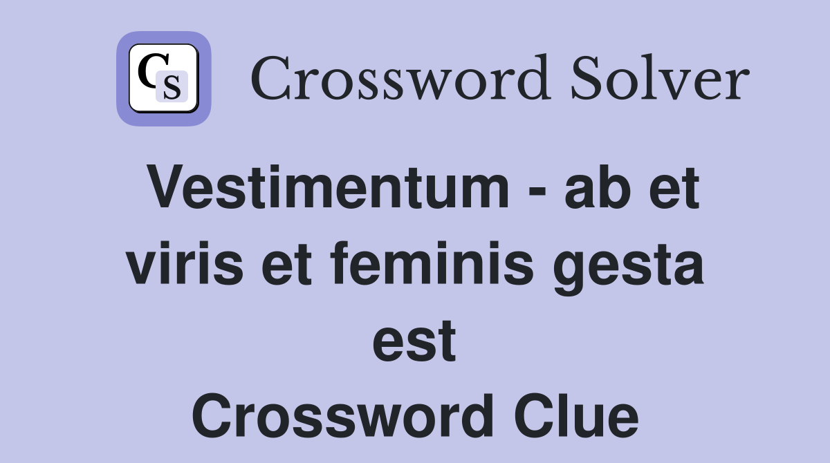 Vestimentum ab et viris et feminis gesta est Crossword Clue Answers