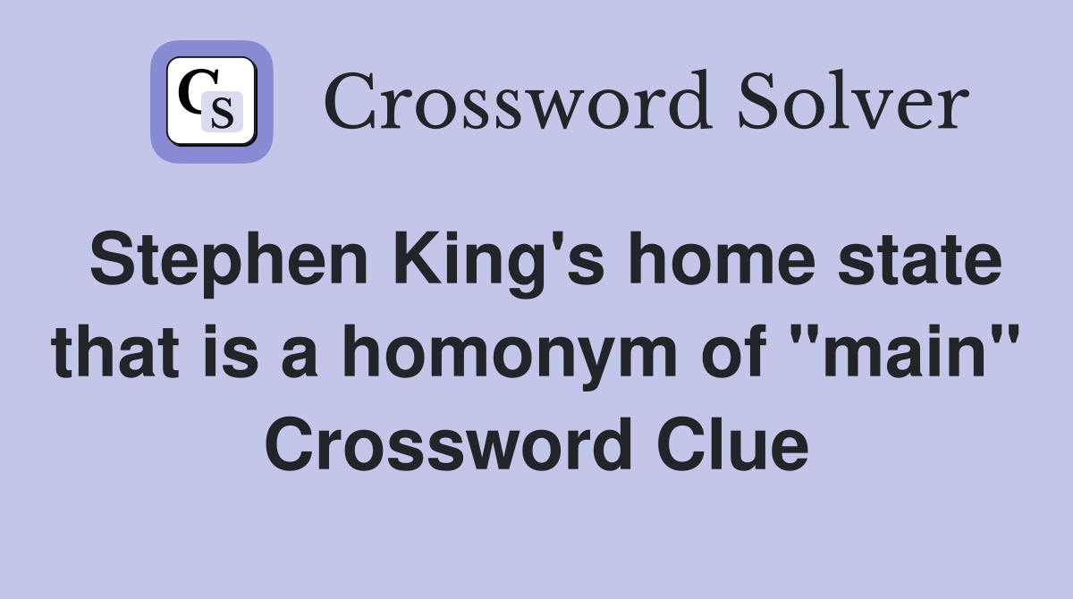 Stephen King #39 s home state that is a homonym of quot main quot Crossword Clue