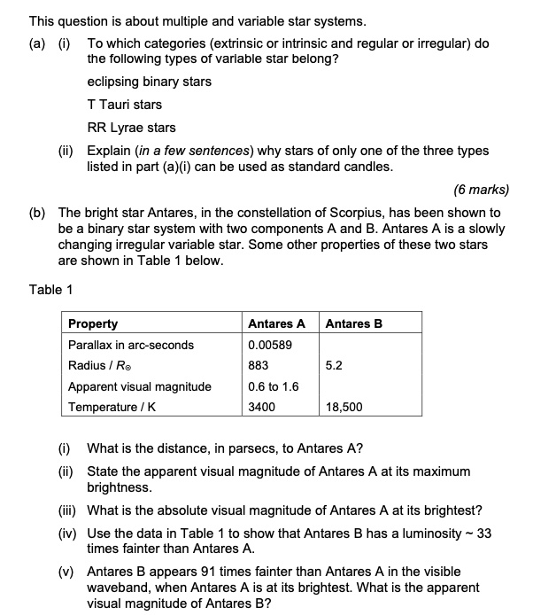 SOLVED: ASTRONOMY This question is about multiple and variable star