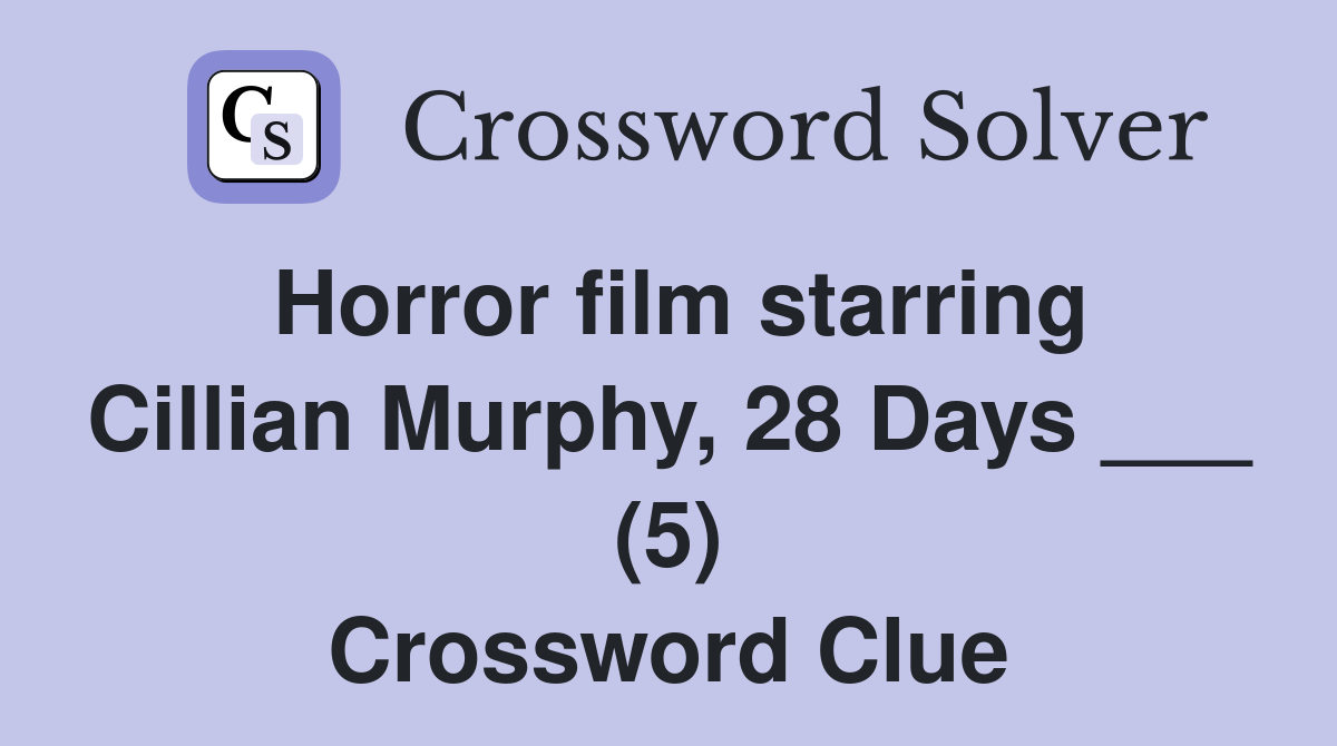Horror film starring Cillian Murphy 28 Days (5) Crossword Clue