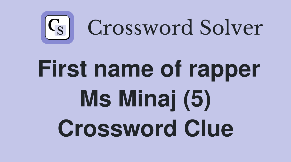 First name of rapper Ms Minaj (5) Crossword Clue Answers Crossword