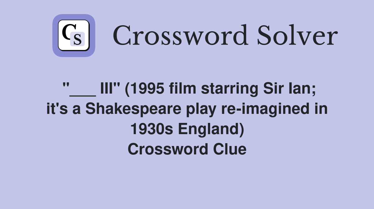 III quot (1995 film starring Sir Ian it #39 s a Shakespeare play re imagined