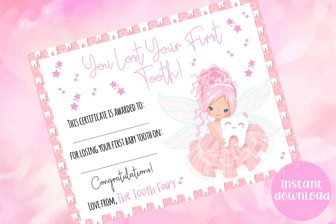 First Lost Tooth Certificate Pink Tooth Fairy Fairy Certificate for