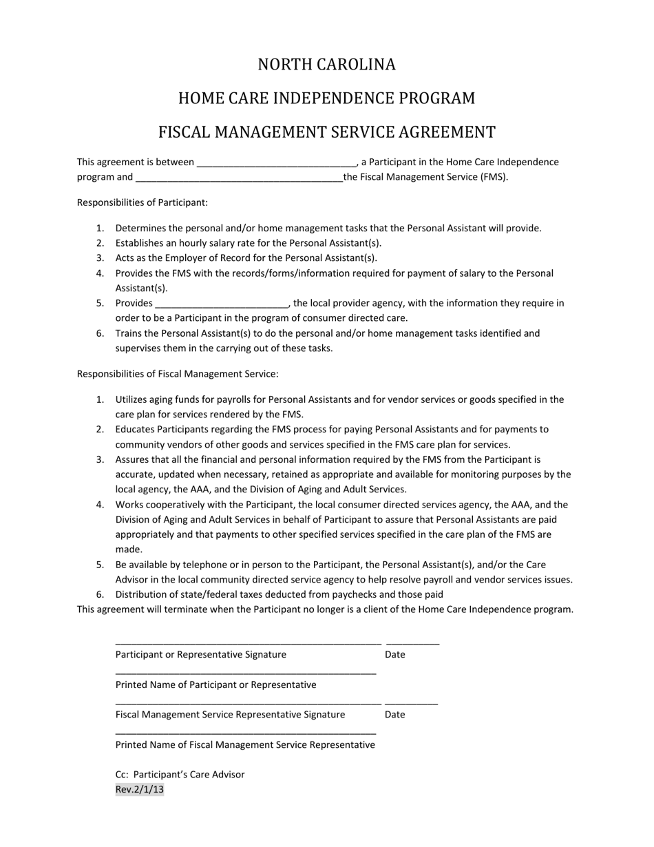 North Carolina Fiscal Management Service Agreement Form Fill Out