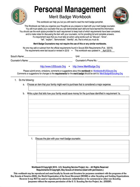 Personal Management Merit Badge Worksheet farm1 fieldagent net