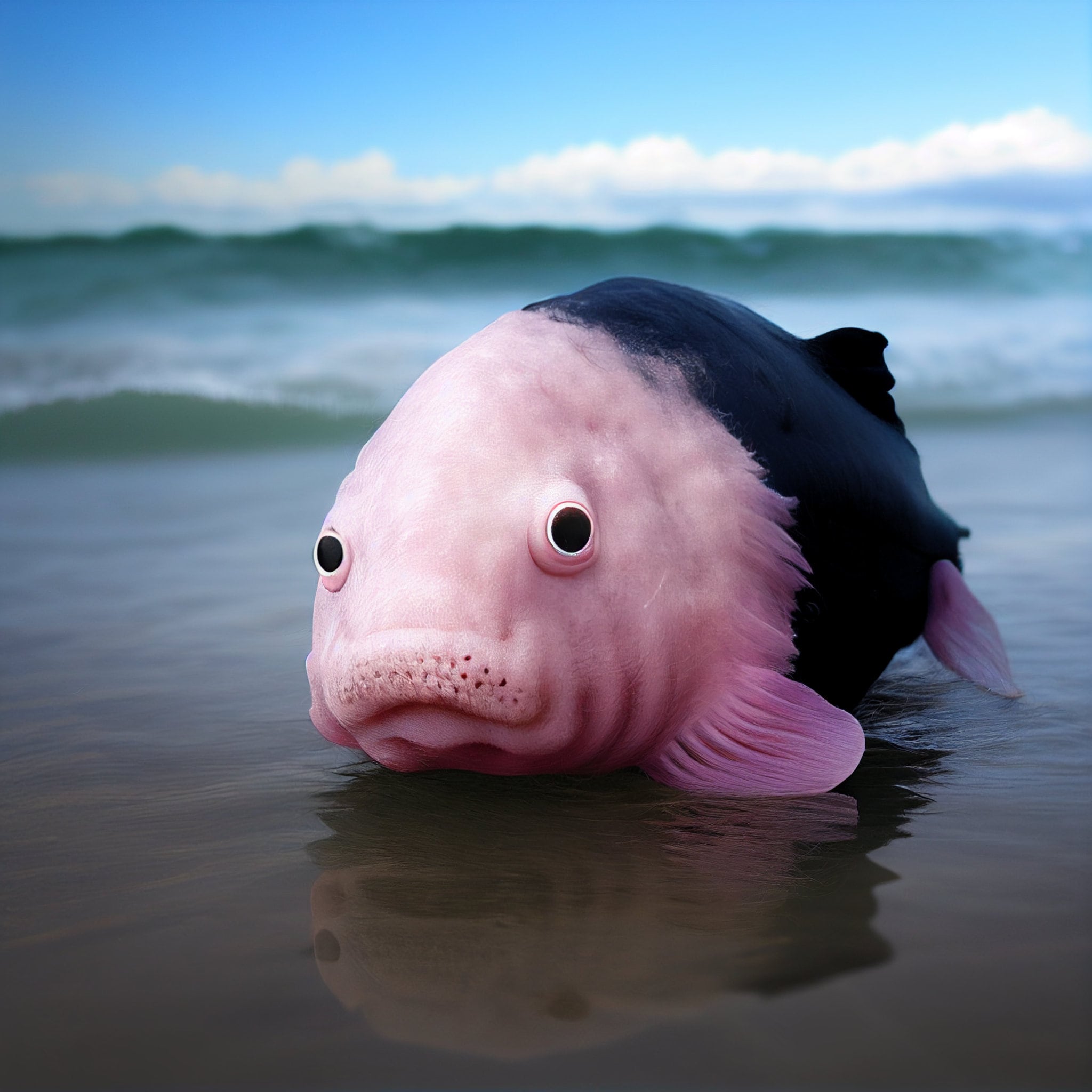 a photo of a blobfish jumping from the water like a Stable Diffusion