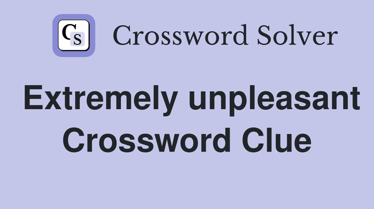 Extremely unpleasant Crossword Clue Answers Crossword Solver