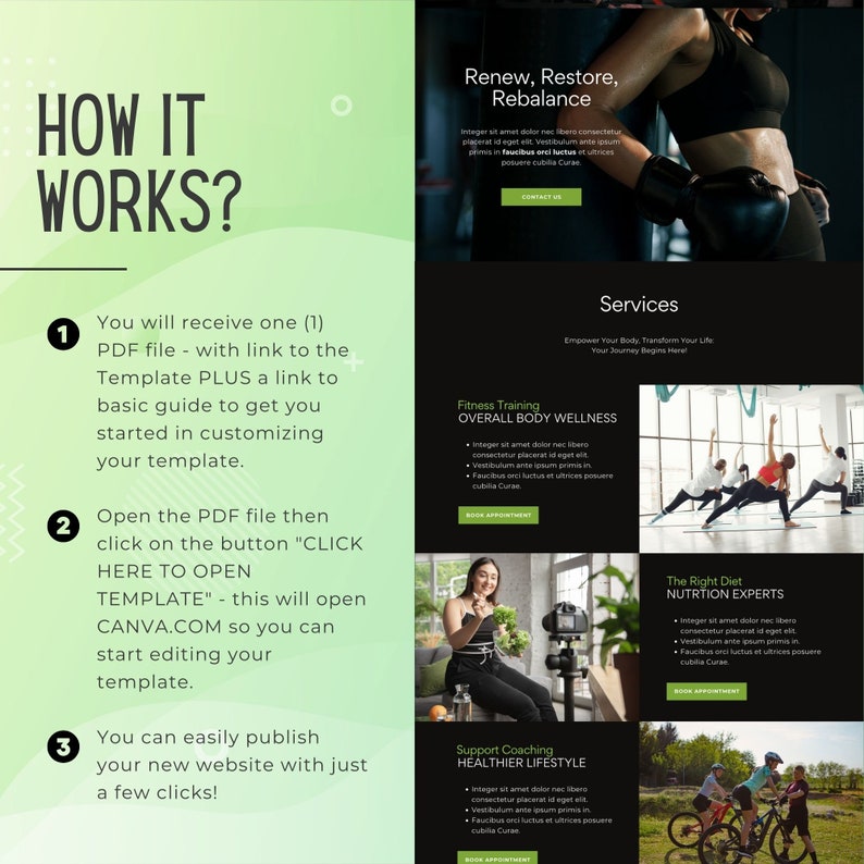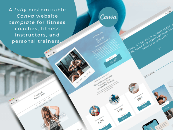 MEGA FITNESS COACH Website Template Kit for Canva Fitness Website