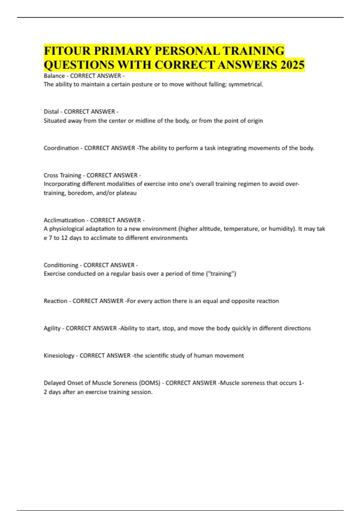 FITOUR Primary Personal Training (1 23) Exam With 100% Correct
