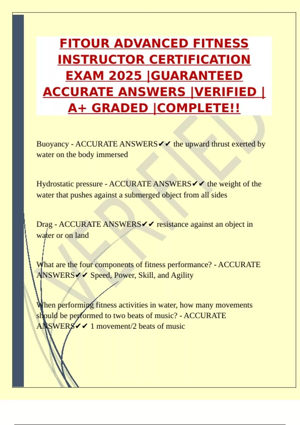 FITOUR GROUP EXERCISE CERTIFICATION 2025 LATEST UPDATE 100 ACTUAL