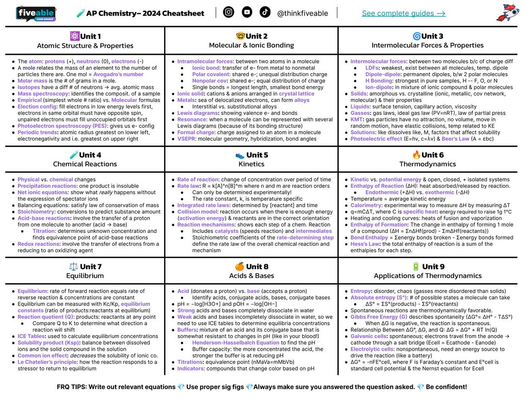 AP Chemistry Cheatsheet 2024 All Units Fiveable • Test Prep Study