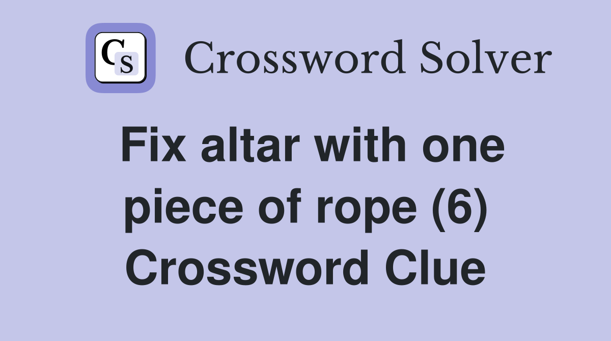 Fix altar with one piece of rope (6) Crossword Clue Answers
