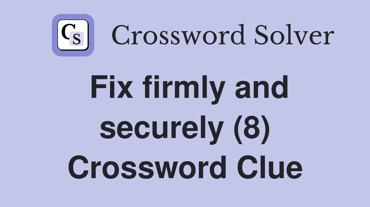 Fix firmly and securely (8) Crossword Clue Answers Crossword Solver