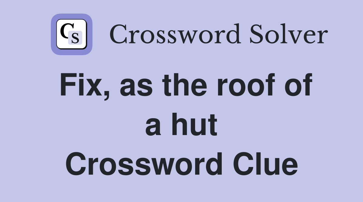 Fix as the roof of a hut Crossword Clue Answers Crossword Solver
