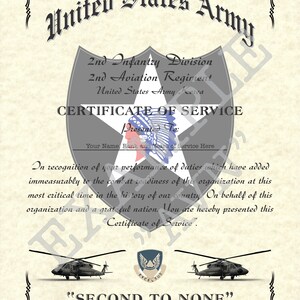 2nd Infantry Division Certificate 8 5 X 11 Etsy