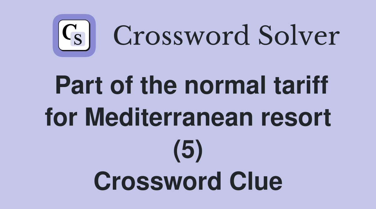 Part of the normal tariff for Mediterranean resort (5) Crossword Clue